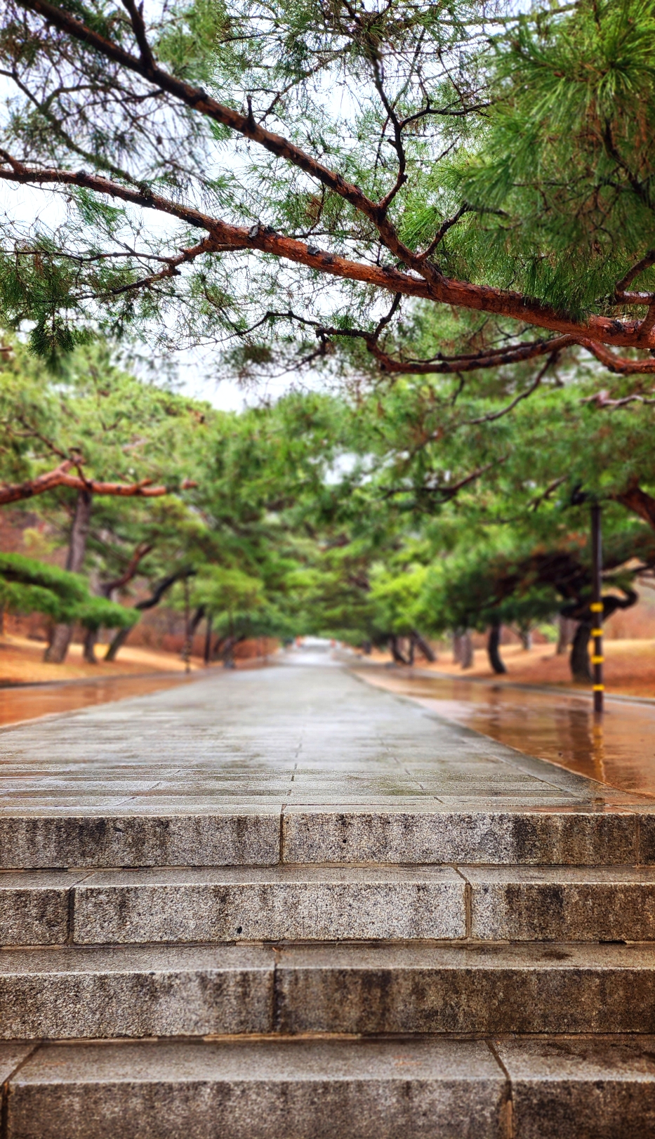 내가 현충사에서 재일 좋아하는 현충사 올라가는 길 마치 가지를 낮게 널어트린 소나무가 뭔가를 지키는듯 숨기는듯 한 모습으로 보인다. 그래서 뭔가 신비서럽기까지한 이길이 난 무척이나 좋다.